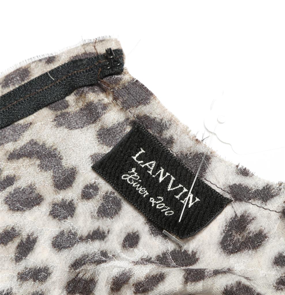 - Designer: Lanvin 2010Condition: New without tags!Color: Brown/Black LeopardContent: No content tag, feels like lightweight silk chiffon.Lined: Only the front portion of the skirt.Size: No size tag, estimated to fit a FR 38, US 6, based on measurements.Bust: 36"Waist: 14"Hips: 43"Sleeve: 23"Shoulder to Shoulder: 16"Length: 43"LANVIN